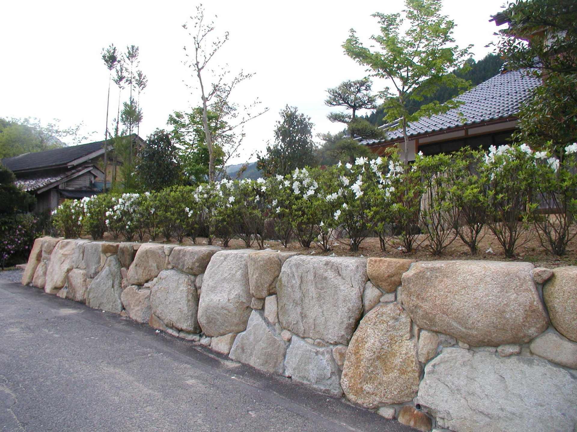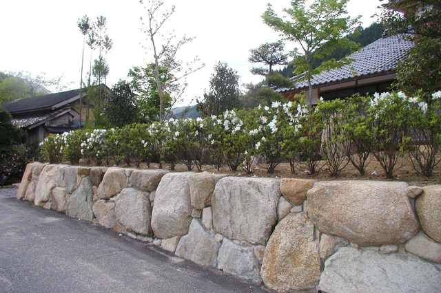 岡山県真庭郡新庄村で、和風庭園の新設工事を行いました。 ご依頼主は、和風テイストの大きなお家を建てられていて、お庭は無い状態でした。 そこで、今建てられている和風のお家の雰囲気に合った和風庭園のご提案をさせていただきました。 外側から見ると石垣の設置もあって、重厚感が出ているお庭へと仕上がりました。